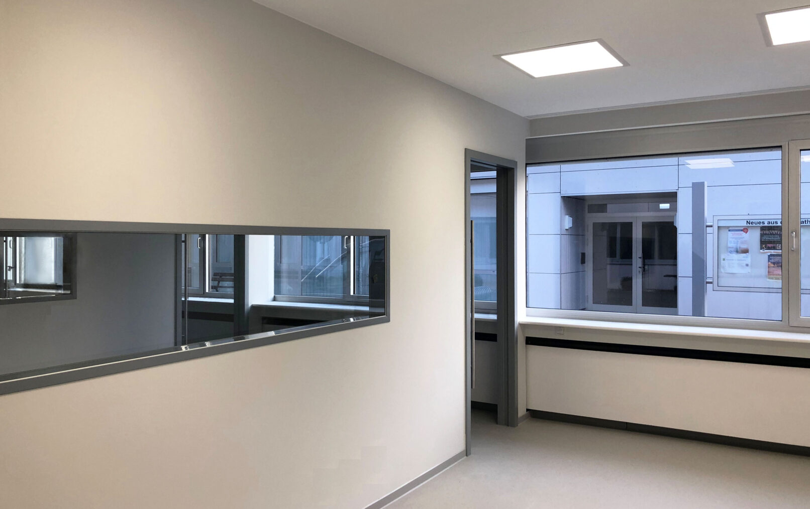 Durch die Zusammenlegung der Verwaltungsbereiche Braunfels/Solms entstand das Bürgerbüro Braunfels, welches eine Neuordnung der Räumlichkeiten im Erdgeschoss der Stadtverwaltung erforderte. Neben den Einzelbüros entstand auch ein neuer Empfangsbereich mit Empfangstresen im Eingangsbereich des Verwaltungsgebäudes. Das Büro hatte bereits 2010 eine umfangreiche Fassadensanierung planerisch entwickelt und baulich umgesetzt.